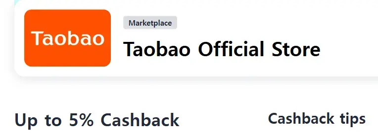 ShopBack (Singapore): Offers up to 5% cashback on Taobao purchases.